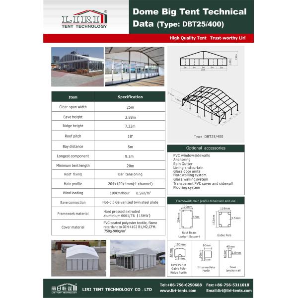 25m Width Dome Tent With Glass Walling And ABS walling For Outdoor Events